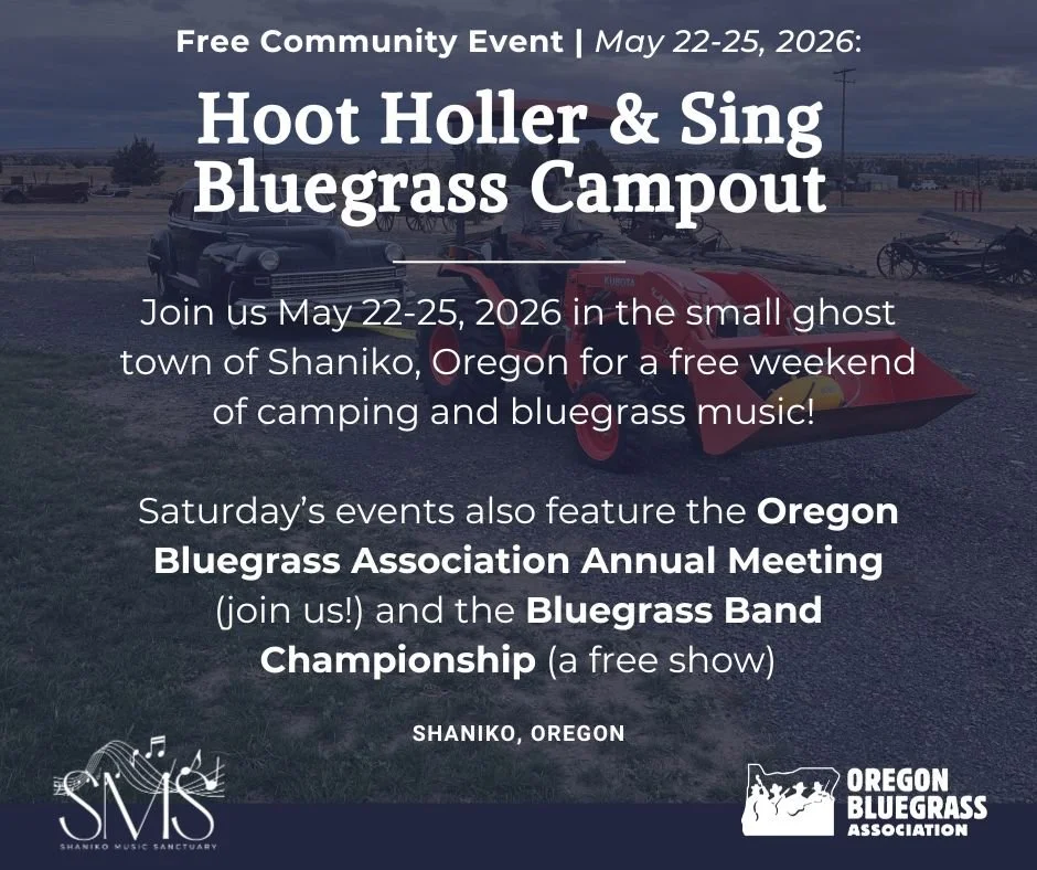 The Hoot Holler & Sing Campout is a one-of-a-kind weekend of performances, community, and pickin' hosted by Shaniko Music Sanctuary. Set against a stunning outdoor backdrop and within historic old-west buildings, this intimate gathering brings together musicians, songwriters, and music lovers for campfire jams, collaborative workshops, and unforgettable live performances. By day, you’ll connect, create, and learn; by night, you’ll sing under the stars, swap stories around the fire, and celebrate the joy of making music together. Whether you come to play, listen, or simply soak it all in, Hoot Holler & Sing is where harmony meets community.